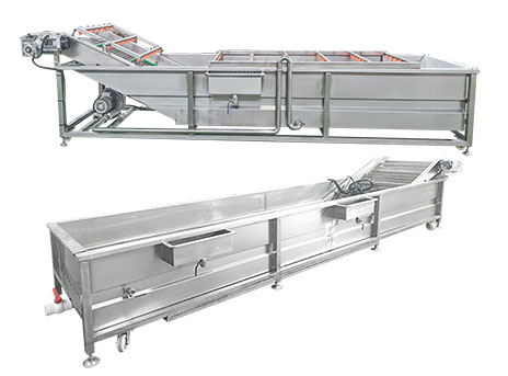 醬料生產(chǎn)前處理所需設備:挑選線(xiàn)、清洗線(xiàn)、漂燙線(xiàn)、冷卻線(xiàn)、切丁機、脫水機、打椒機、凍肉切丁機、油炸鍋、斬拌機